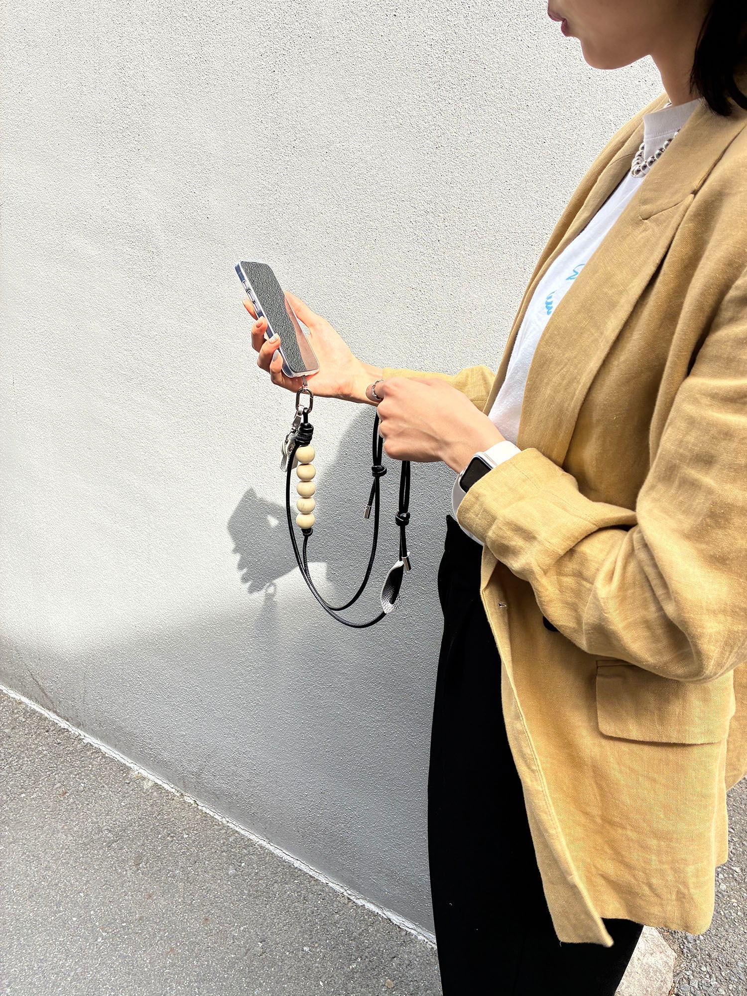 存在感あふれるADAPToLL ショルダーストラップ。メタルビーズとウッドビーズを巧みに組み合わせたデザインが、ラフなスタイルやジャケットスタイルにもぴったりです!多彩なシーンで活用できるスタイリッシュなアイテムとなっています。