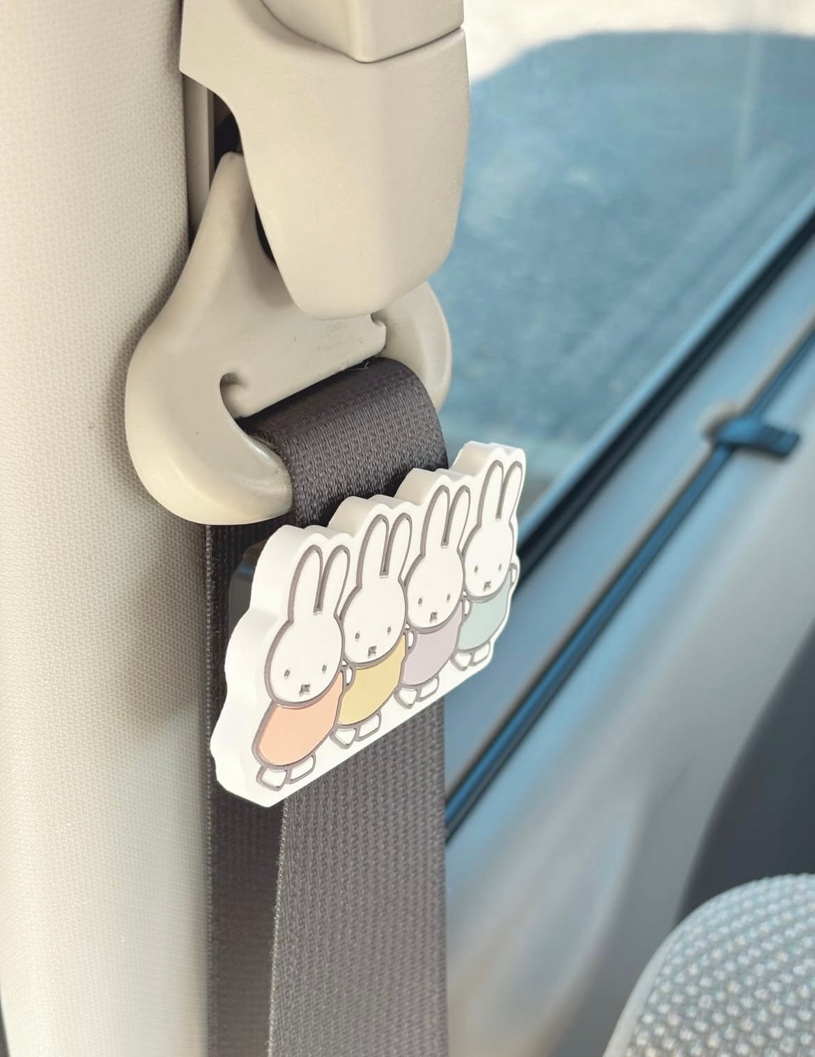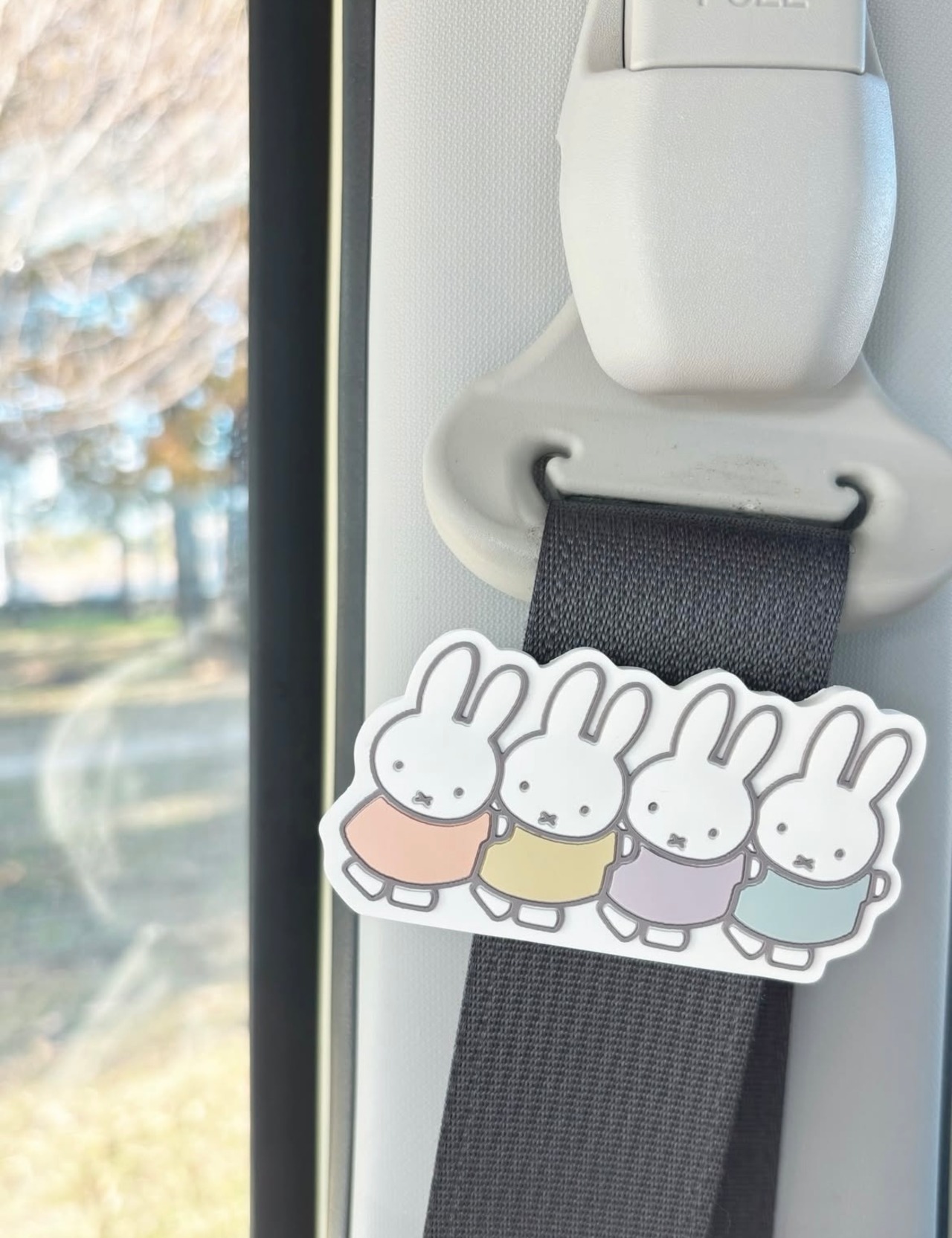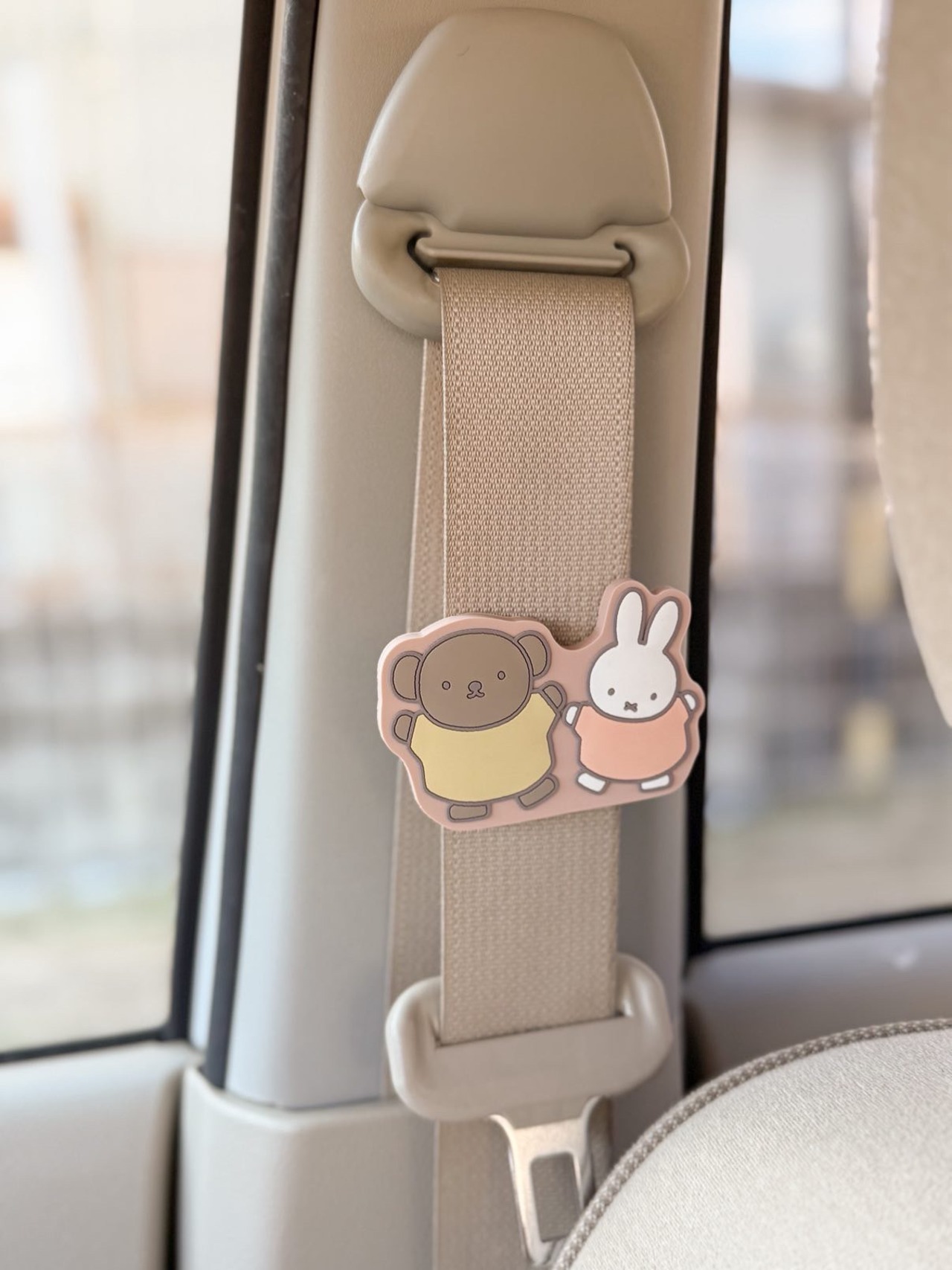 シートベルトのストッパーとしての機能を果たしつつ、愛らしいミッフィーがあなたの移動を楽しくしてくれます。ドライブ中や毎日の通勤時に!