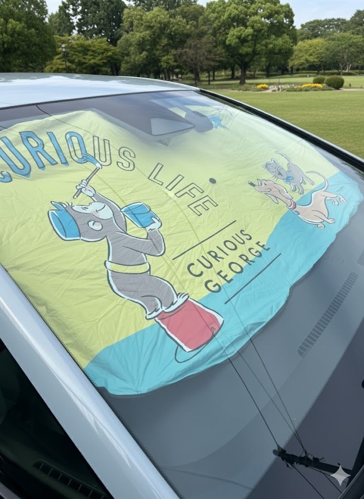 開閉ラクチン!おさるのジョージ傘サンシェードで、猛暑対策をもっと簡単に!