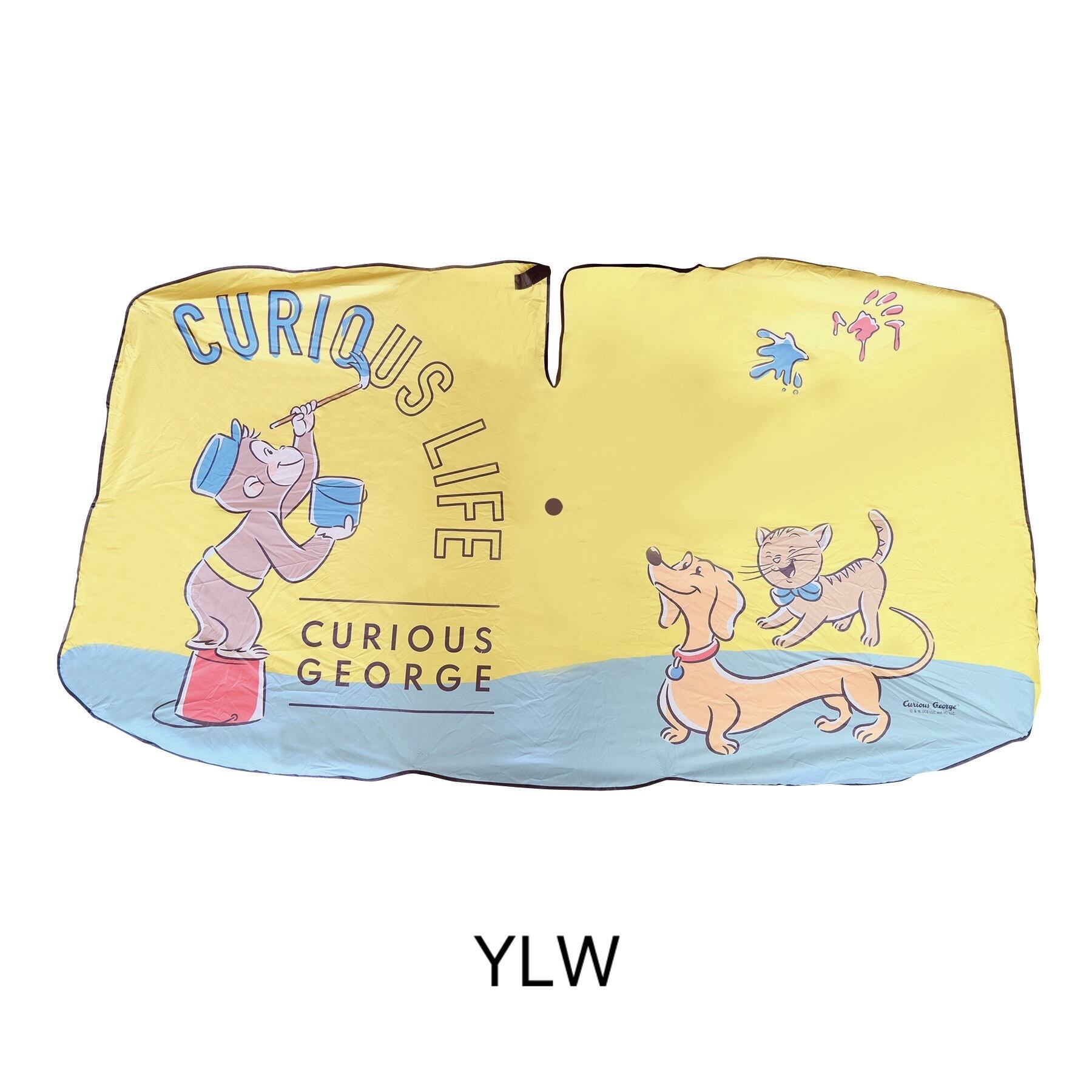 暑い夏の日差しをしっかりブロックしてくれる「おさるのジョージ傘サンシェード」簡単にパッと開いて設置が可能。使わない時はコンパクトにスマートに収納できます。