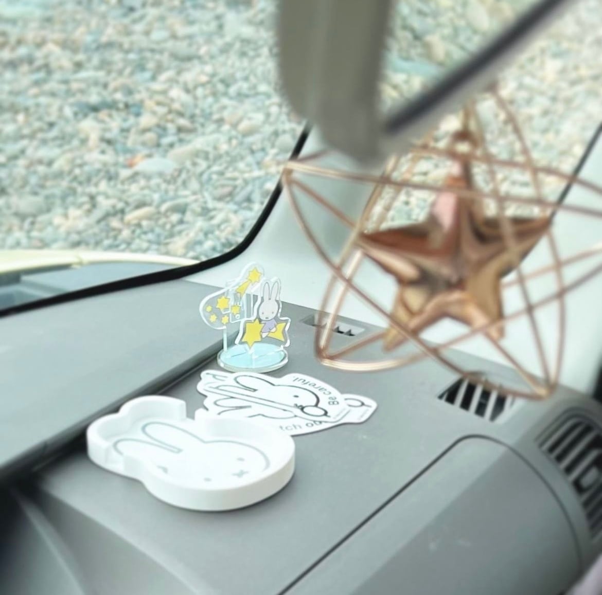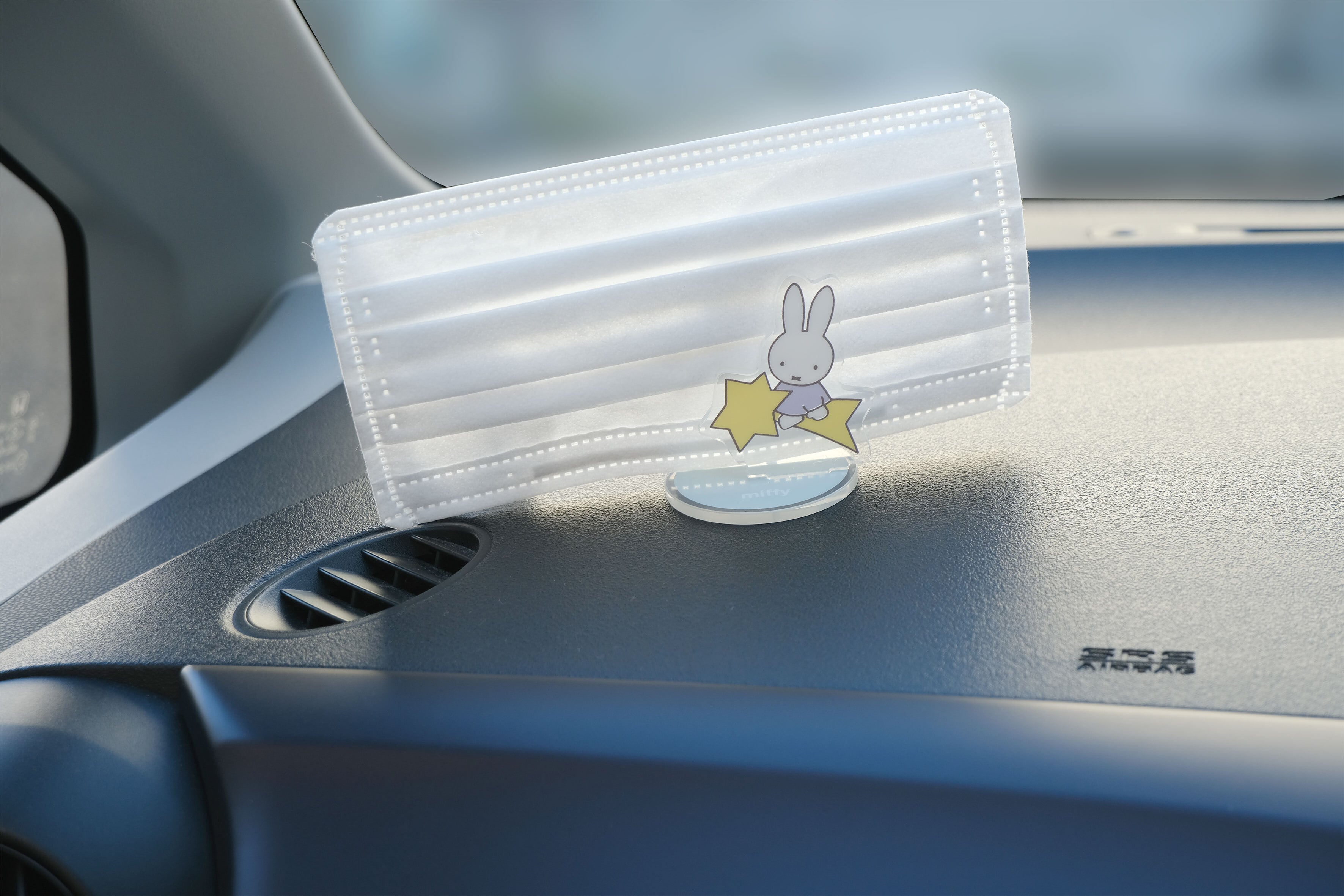 アクリルモチーフの間に、マスクを挟むこともできるので、マスクの置き場としても使えるかわいいスタンドです。