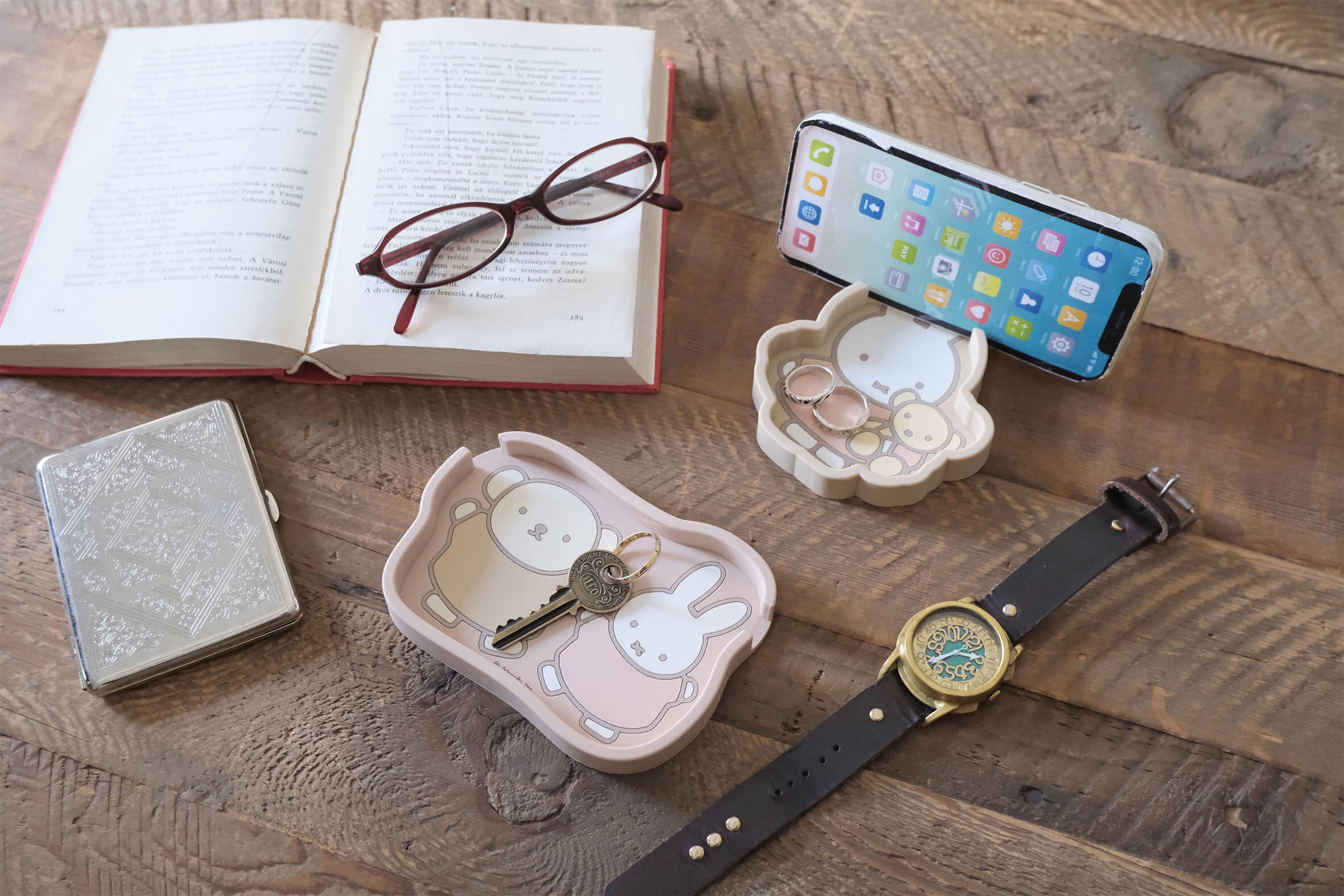 車のダッシュボードや、玄関、デスク回りに使える、スマホも立てかけられるスマホスタンドトレーです!ダッシュボードでお使いいただく場合には、付属の専用の貼付けシールをご使用ください。